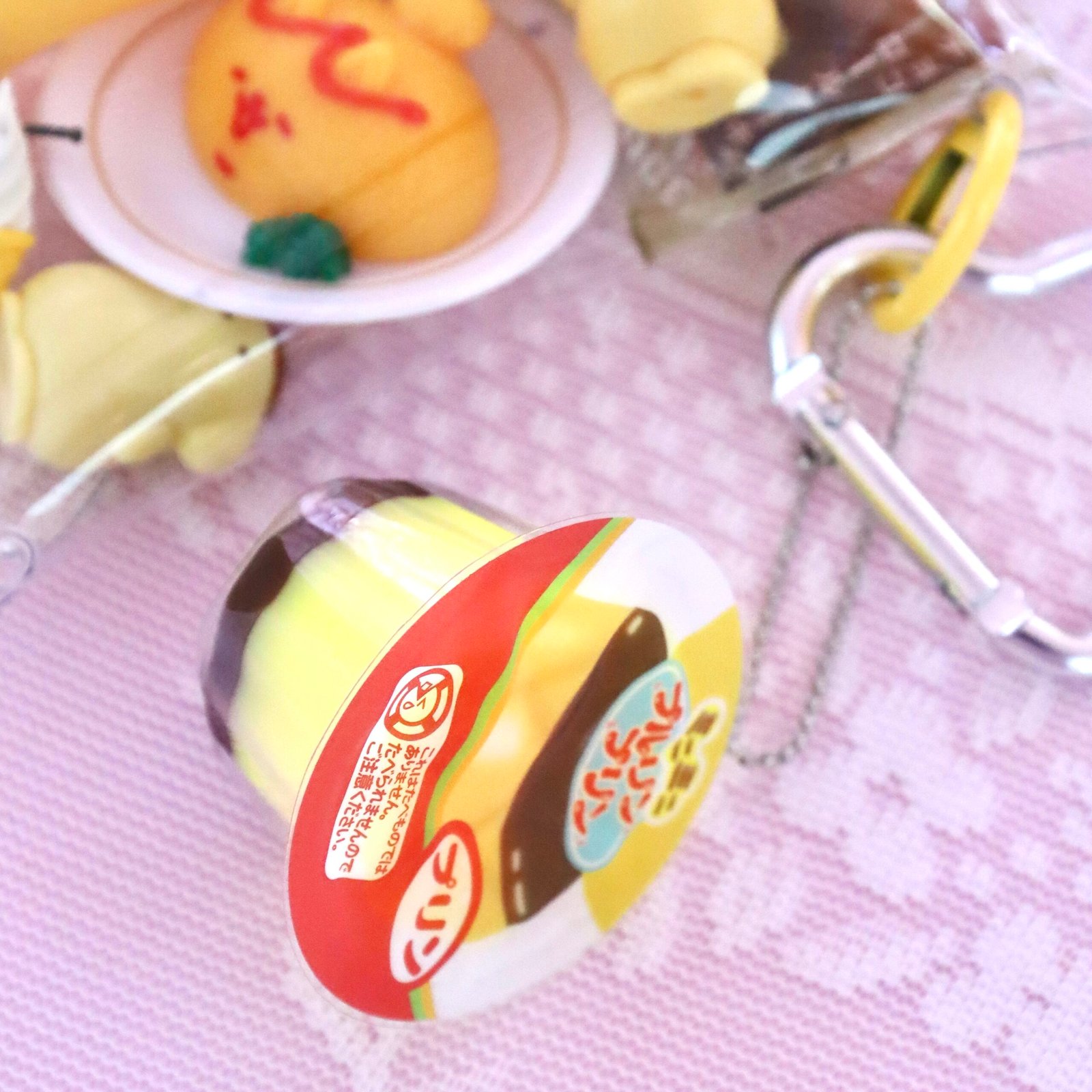 A handmade Pompompurin trinket pouch filled with miniature treasures collected from Japan’s gachapons. Featuring a delightful dessert and café theme, the pouch includes adorable Pompompurin elements such as sweet treats and a charming pudding charm, making it perfect for collectors and Sanrio lovers ♡